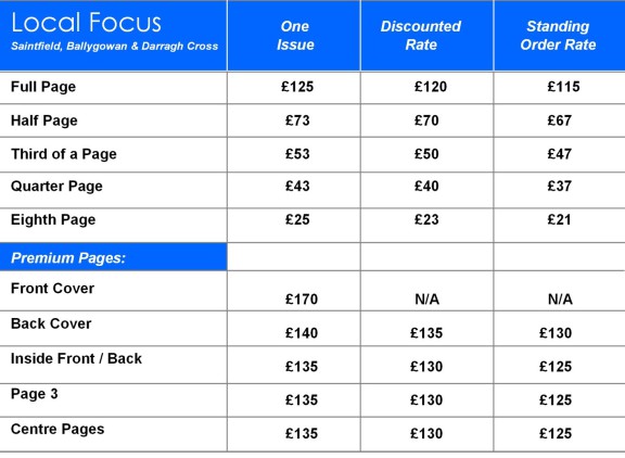 Just decide which magazine you'd like to book and what space you need, then ring me on 028 90 814718 or email localfocus@btinternet.com to book your space, and I'll take it from there.